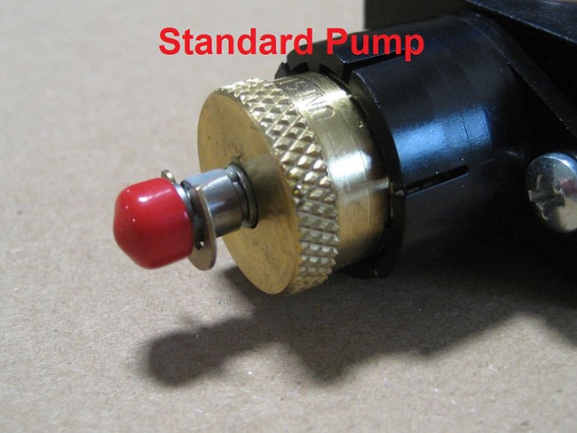 - Try cycling the pumps at different stroke lengths. While the pump is running at a lower cycle rate (20-30 cycles per minute), screw the stroke adjustment knob all the way out for standard style pumps (brass adjustment knob) and then all the way back in, or all the way in for MV style pumps (black anodized aluminum adjustment knob) and then all the way back out.