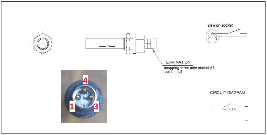 The Mini-Roller™rotation sensor is actually a reed switch, which provides a dry contact signal when a magnetic field passes by and closes the contact.