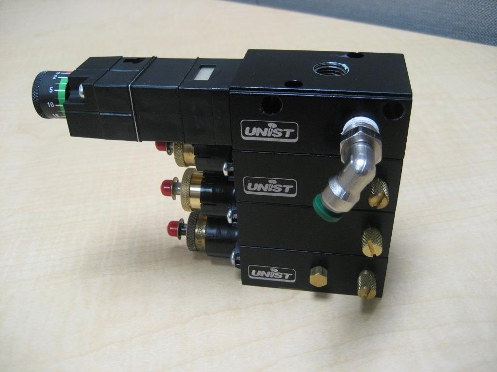 The viscosity of the old fluid will play a major role in how much disassembly of the system is required. Typically, the thinner the fluid (i.e. lower viscosity) the easier it will be to clean from the system. Fluids that evaporate (alcohols, water, etc.) will also be easier to work with in this instance. For thinner and evaporative fluids, after removing the fluid from the reservoir it may only be required to open the bleed screw on the bottom pump of the stack and allow any remaining fluid in the pump stack to drain.