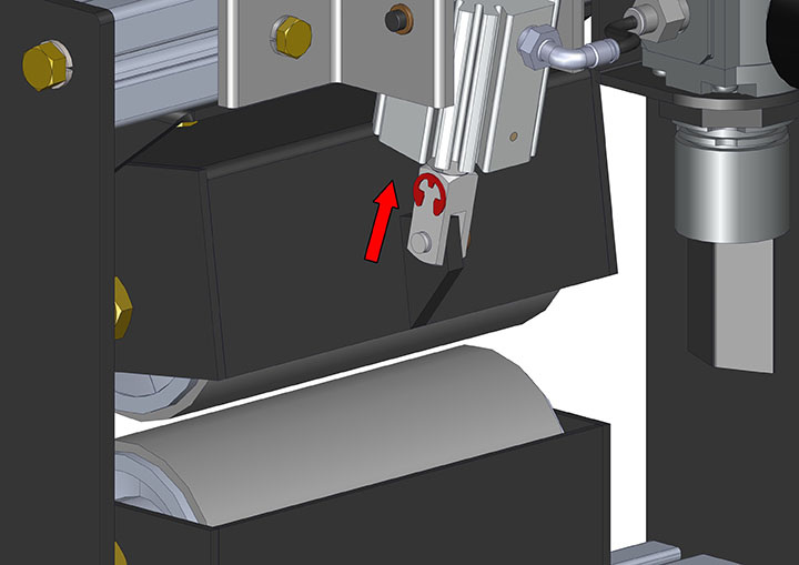 - Reinstall the rod clevis pin and E-clip on the air cylinder.