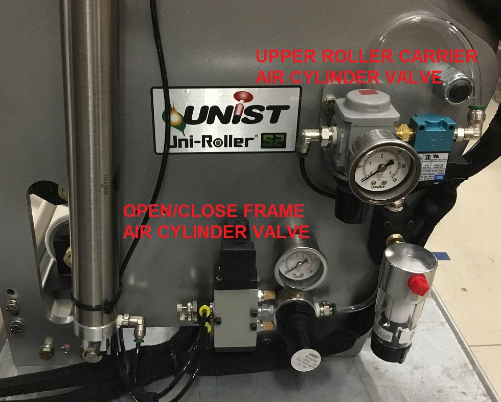 Some Uni-Roller®HG systems have two solenoid valves, one for the small cylinders (upper roller carriers) and another for the large cylinders (frame). However, there is only one applicator open/close output on the SmartFlow® controller. Users have a few options for controlling the cylinders.