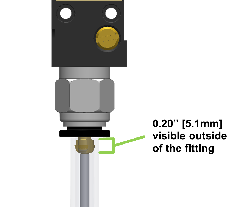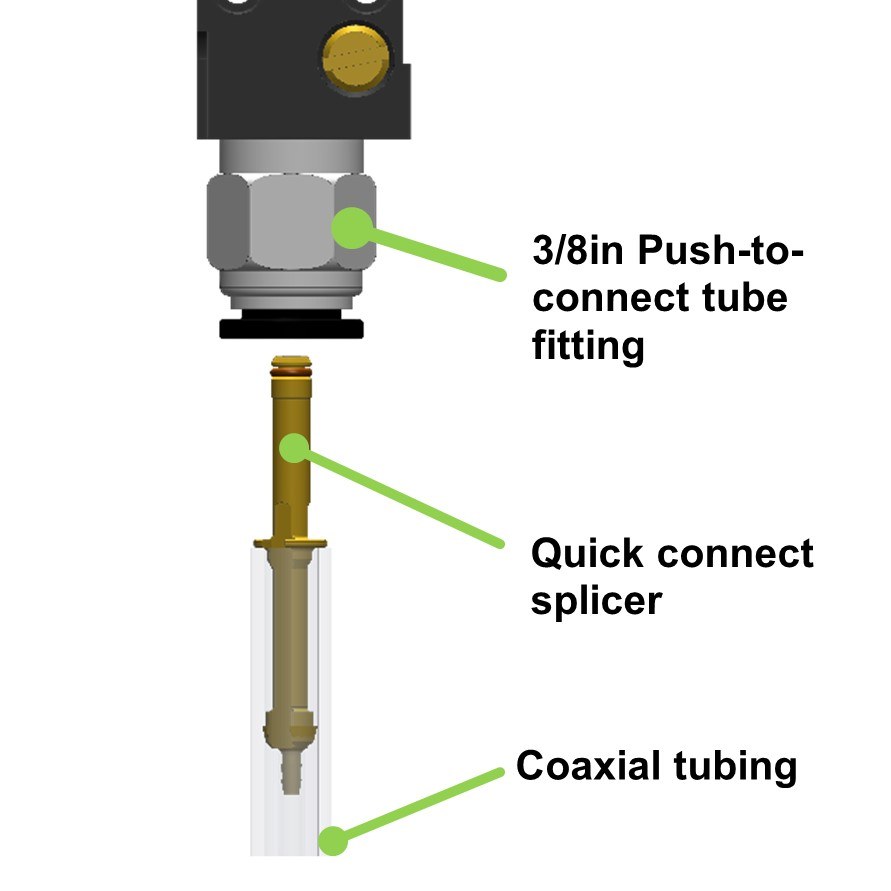 For systems using the quick connect splicer, another common issue that will cause fluid to pool in the outer coax tube is when the quick connect fitting is not installed properly. When properly inserted, only about 0.20in [5.1mm] of the quick connect should be visible outside of the fitting. If this is installed correctly and fluid looks like it is leaking into the outside coax tube from this connection point, the O-ring on the quick connect can be replaced. Contact Unist for a replacement.